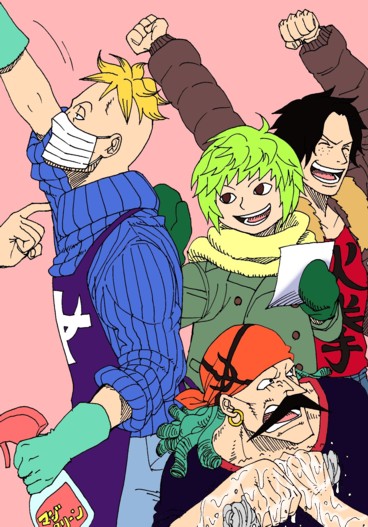 日記絵は、年末の大掃除と買出しに大忙しな白ひげ海賊団(一部)です。